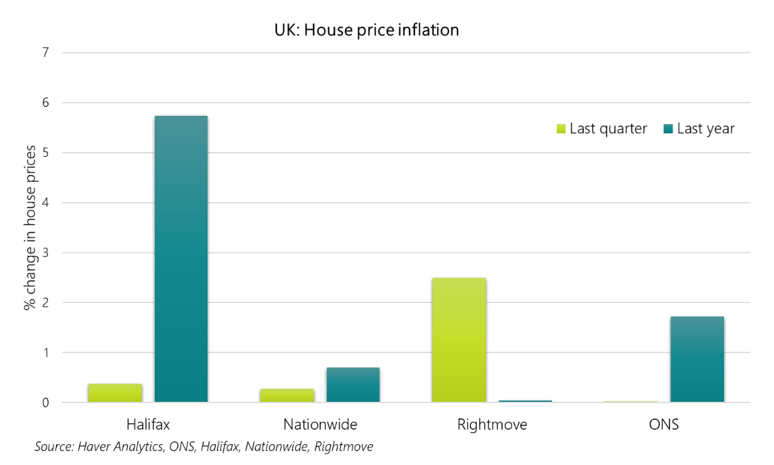 Although the indices paint a picture of a slowing housing market, there is no consensus on how much the market is easing. Some of this variability will reflect methodological differences. Although the ONS index is based on observing pairs of sales over time, the Nationwide and Halifax indices represent the price of a house with a typical set of characteristics. The Nationwide update this view regularly but the Halifax outlook is based on what was typical in 1983.