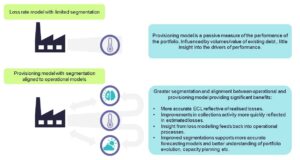 More closely integrating provisioning within the business and the same conversations as operational processes aligns to model risk management best practice, bringing models and stakeholders closer together. More sophisticated models can better support more accurate forecasting and financial and operational planning.