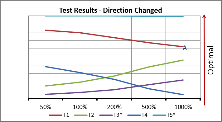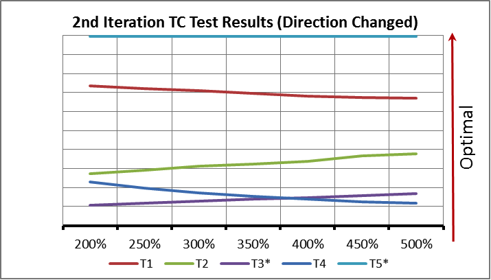 The same tests are repeated but for a reduced range and their relative weighting reassessed, (based on judgement) to further refine the range. In this case, judgment and the results that this is based on have highlighted that Tests 2 and 4 are most significant in terms of optimisation and as such have been repeated in isolation.