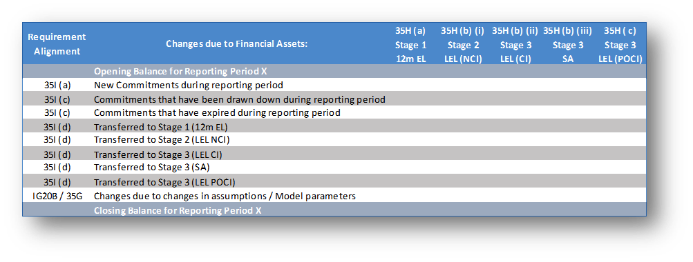 An example below of the movement analysis required below is a good one, under IAS39 only the increase or release from impairment (collective and specific) would need to be considered whereas for IFRS 9, the detail required is much more granular across each asset.