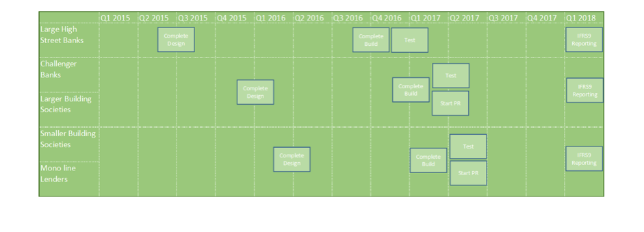 As an example, a typical large high street banks, may well have a full service offering on their retail side, so have to devise solutions for Unsecured term loans, mortgages, overdrafts, credit cards and car leases. In addition to this, they may have different offerings for different customer segments, for example, sub-prime or High Net Worth (HNW) or legacy products as a result of an acquisition or merger. Whilst there may be an element of crossover, this all requires thought and analysis to determine the right level of segmentation and development. On the commercial side, there may be similar issues but these may be compounded by lack of data or lack of suitability to modelling, so they may have to define a more manual approach. Clearly the design and delivery is much simpler and requires less time for an organisation with only a retail mortgage offering for example.
