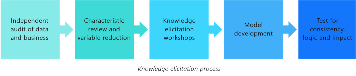 • In order to ascertain what would be the most suitable approach for extracting knowledge from the experts, the following must be considered: the portfolio profile, availability of and access to internal knowledge and availability of data. This will be reviewed during an initial audit.